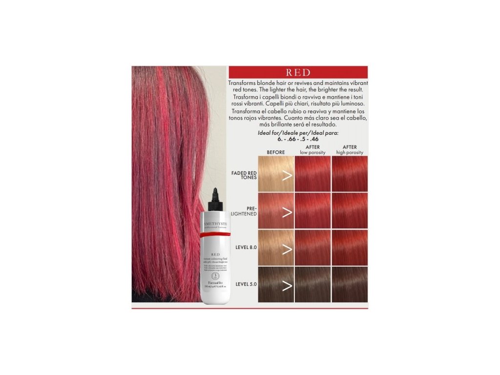 Přeměňuje světlé blond vlasy a oživuje i zachovává zářivé červené tóny. Čím světlejší jsou vlasy, tím intenzivnější je výsledek.
