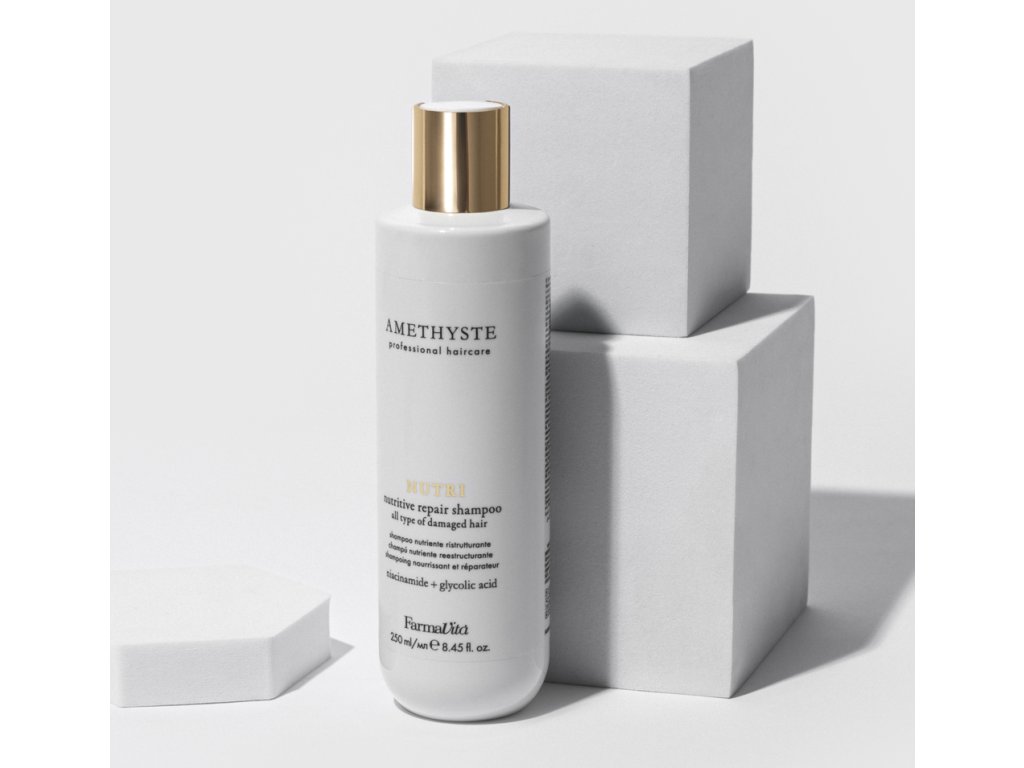 Pro dosažení nejlepších výsledků a komplexní obnovy doporučujeme používat celou řadu Amethyste Nutri – šampon, masku a vyživující lotion.